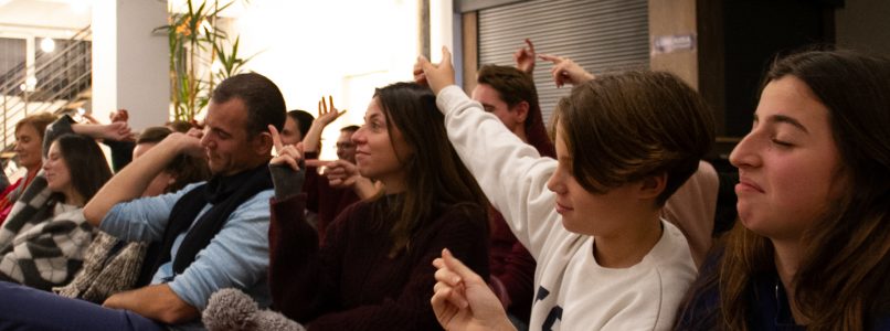 • Ongehoorzame burger/Tegengestelden: JE stelt vragen of geef commando’s die men moet “ongehoorzamen”, dus tegengesteld beantwoorden/uitvoeren. Dit is opwarming uit “Theatre of the Oppressed” van Augusto Boal. En vrij aan te vullen met vragen/commando’s naar eigen goesting… Hier gaan we: “Ben je een man?” Als je man bent, moet je dan neen antwoorden. “Wat zegt een hond?” Miauw. “Wat zegt een kat?” Woef. “Klappen met de handen”: dan moet publiek stampen met voeten (en omgekeerd), “Sta recht!” opstaan/gaan zitten