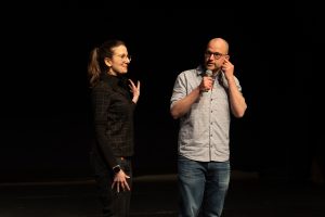 Dus voor de spelers : goed luisteren naar verhaal, maar ook luisteren tussen de lijnen, niet zomaar het verhaal zelf. De scènes gaan over de menselijke aard, maar maak het scenisch, fictionaliseer het. Een soort experimentele ‘wat-als’. Iets van de monoloog nemen, en die scène recreëren in een andere realiteit. Kortom : Kijk naar de waarheid, en doe iets analoogs. Niet naspelen van de monoloog, niet slaafs volgen wat er in de monoloog verteld wordt.